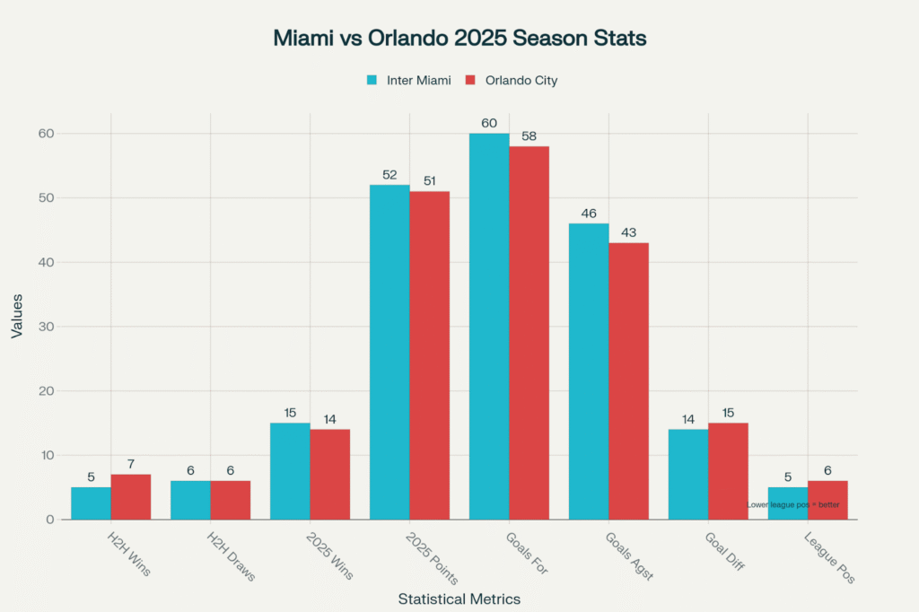 Inter Miami vs Orlando City: Head-to-head statistics and 2025 season comparison showing the competitive nature of this Florida rivalry